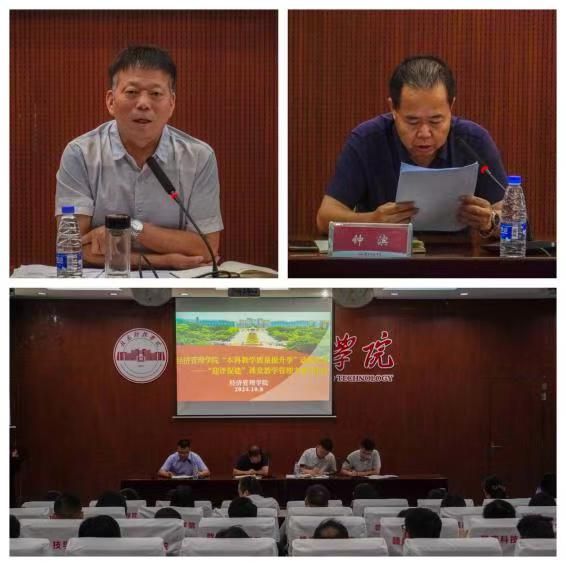 10月8日下午,今年会在新明楼学术报告厅召开“本科教学质量提升季”动员大会。今年会党委书记肖永鸿、副院长钟滨、学院领导班子及全体教职工出席此次会议。会议伊始,学院学工负责人梁文学强调辅导员与班主任应落实包括心理排查、帮扶学生和学业清查等各项工作,认真履行职责。接着,学院教学负责人王波就11月评建工作进行部署,解读《今年会教学质量监控与持续改进工作计划(2024-2025D1学期)》文件,布置学院课堂教学情况周报制、听课评课、学生帮扶和学风建设主题系列活动等工作。会议最后,肖永鸿从明责任、强担当、有作为三个方面对全体教职工提出要求,强调教师应从备课讲课、学分管理方面着力,明确教师职责,增强责任担当,为合格评估贡献力量。